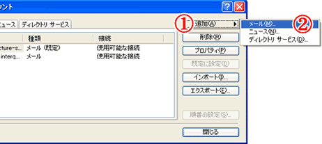 | 1.「追加」→2.「メール」と進みます。 | ||||||||||||||||||||||||||||||